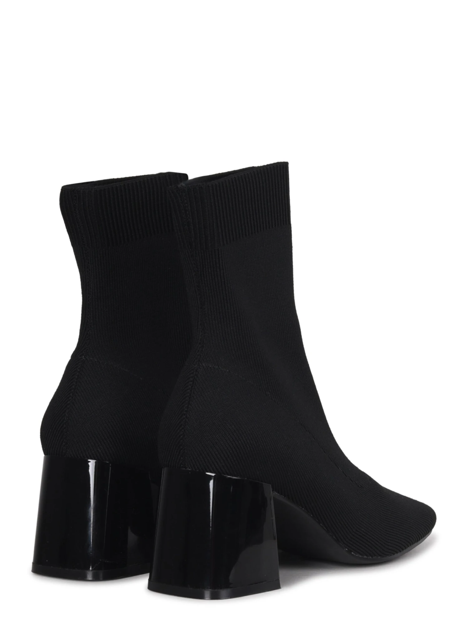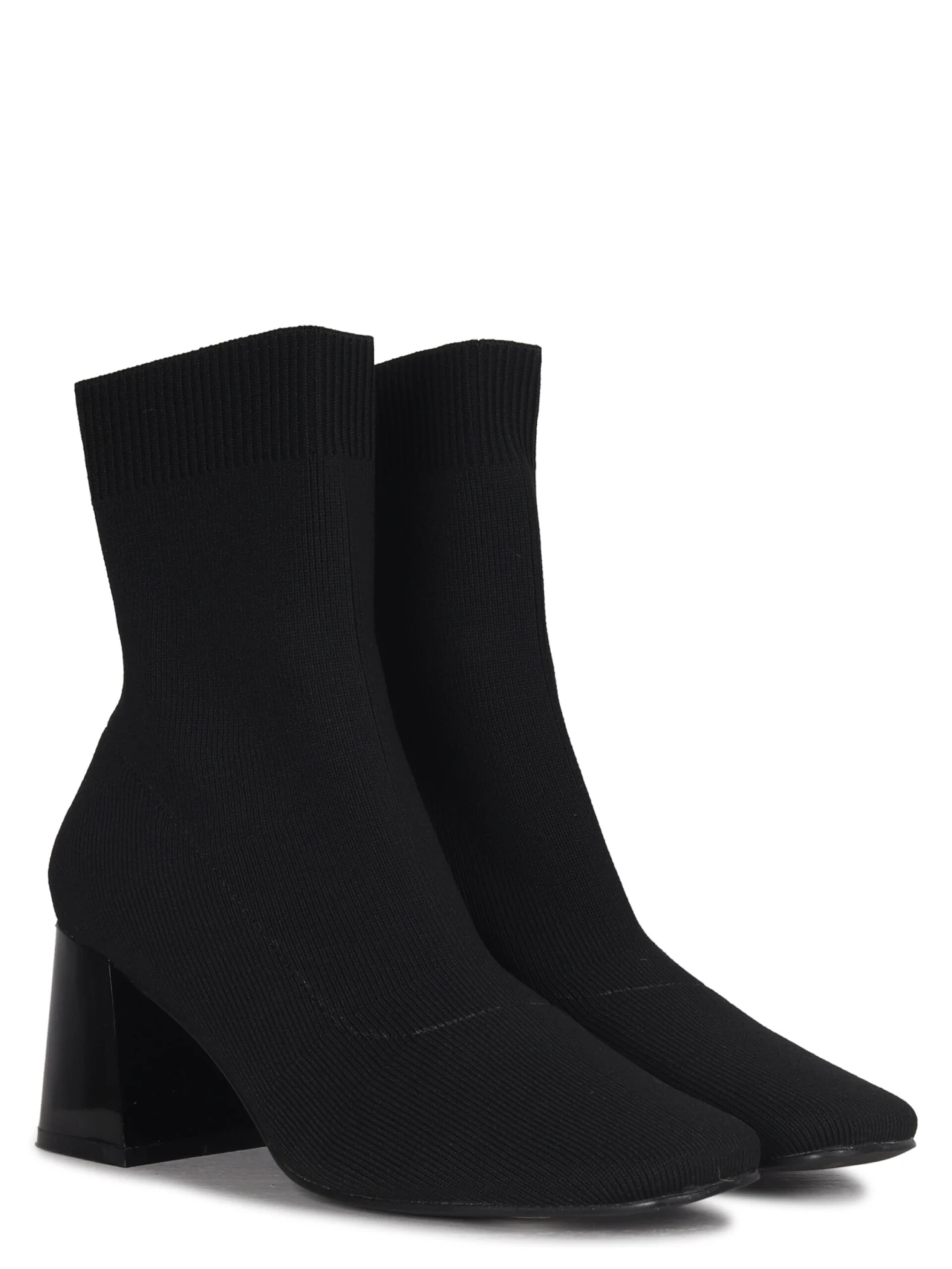 Crafted from a luxuriously knit fabric, this pull-on sock boot boasts a modern square toe, a sophisticated block heel, and a heel height of 7cm.