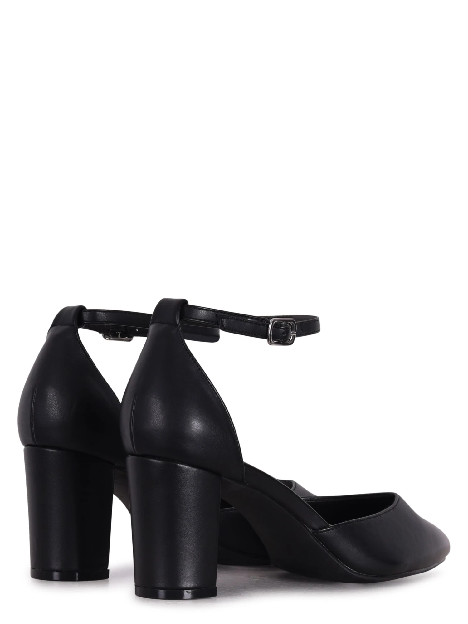 Take your favourite looks to the next level with these stylish block heels, perfect for any occasion! With a 7 cm high heel and faux leather court heel style ankle strap, you’ll be turning heads in no time.