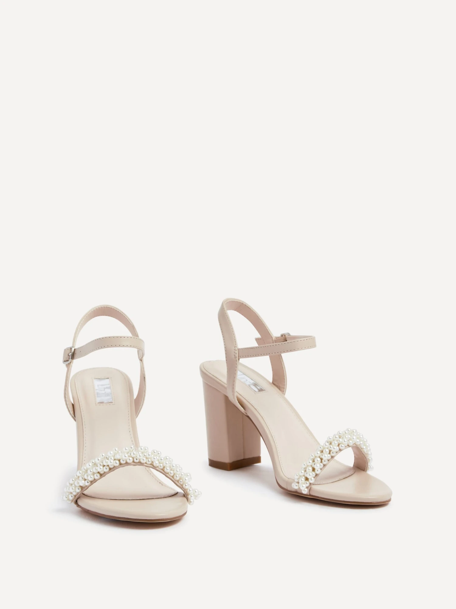 Make a statement with the LULU sandal. Crafted with a block heel and an embellished pearl front strap, this sandal is perfect for special occasions like weddings. Heel Height: 8cm.