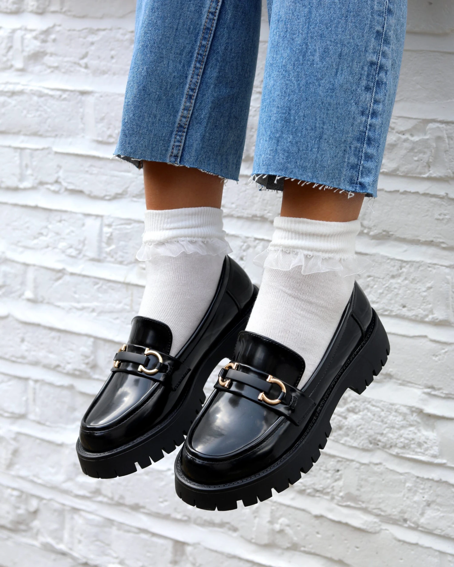 Maddox chunky loafers are the perfect way to rock this season’s hottest trend. Crafted with a stylish gold trim and flexible design to wear with or without socks, these loafers are a versatile statement piece for any wardrobe. Dress them up or down depending on your mood.