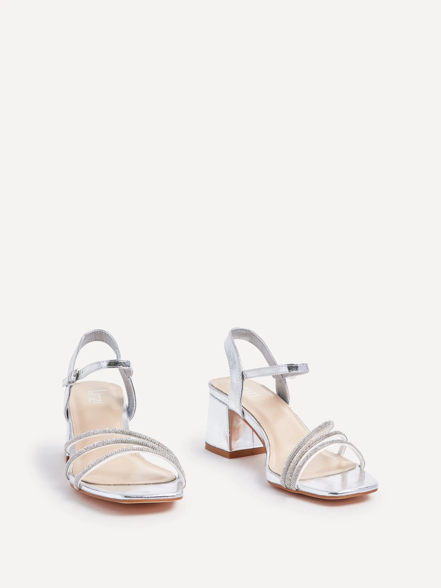 Our Linzi wide fit range is designed to let you show off your style in supreme comfort. Made from luxurious faux leather with three front straps covered in sparkling diamantes, these open-toe & back block heeled sandals boast a 5.5cm/ 2.16 inch heel for a sultry, show-stopping look.