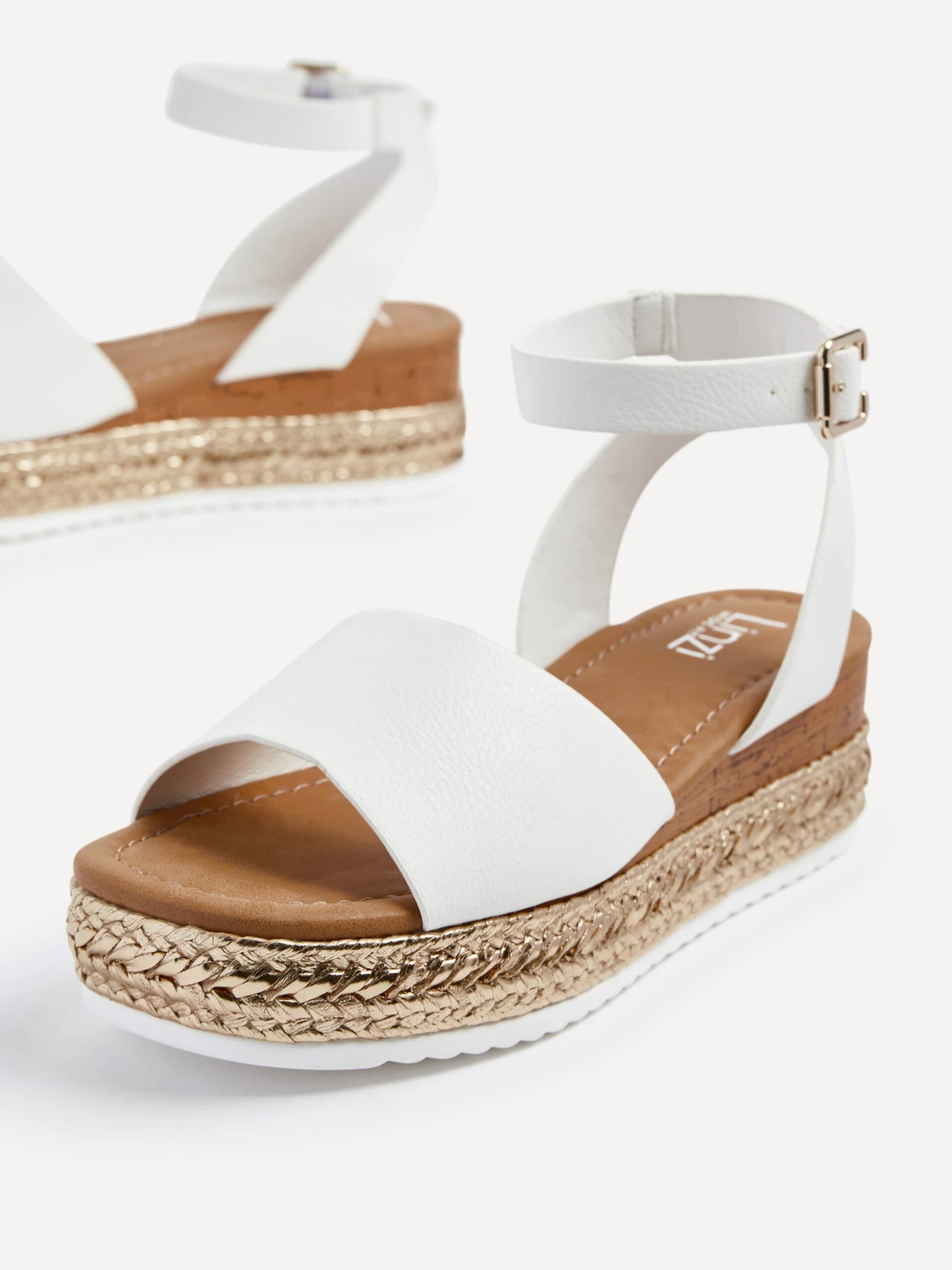 Our Linzi wide fit range is designed to let you show off your style in supreme comfort. Perfect for a relaxed and beachy vibe. Featuring a gold rope detail 5cm platform offering both height and stability, providing a fashionable and comfortable option for any occasion.