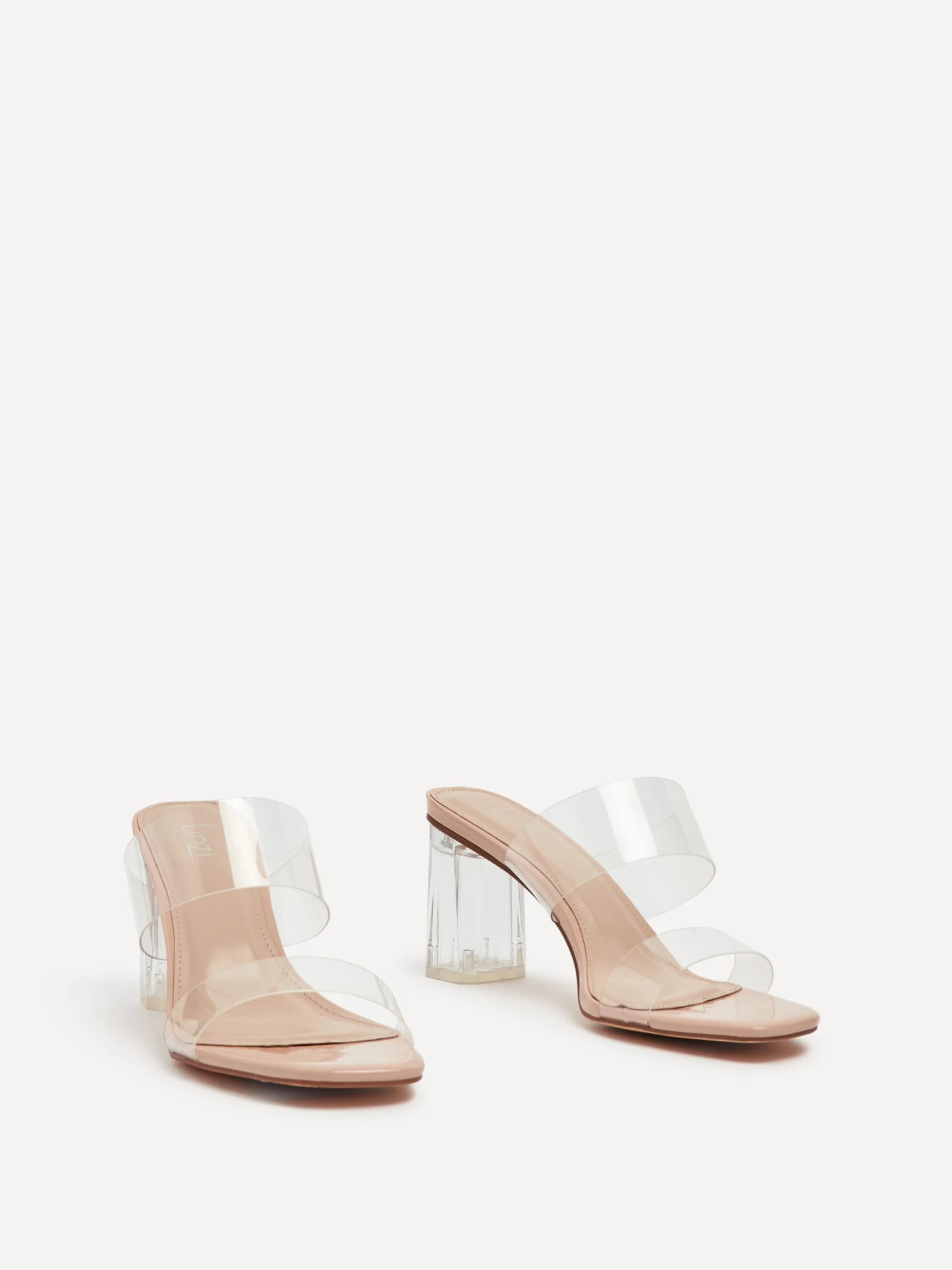 The Muse nude perspex heeled sandal combines modern elegance with comfort. Its sleek 7.5cm block heel and nude perspex design make a stylish statement for your night out.