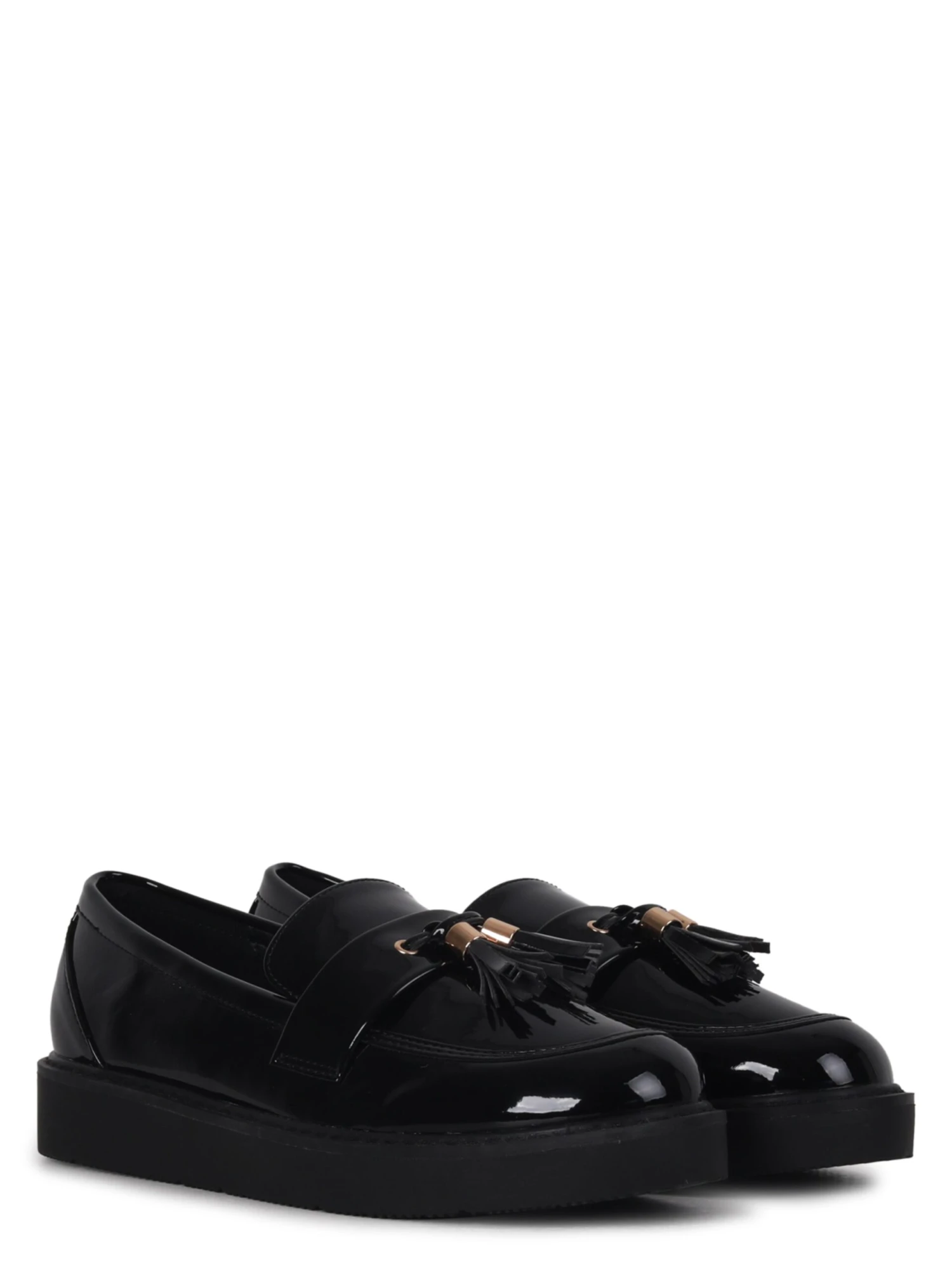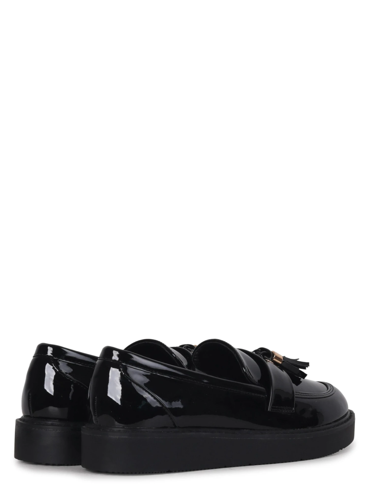 Elevate your look with the Naomi loafers from the Linzi Wide Fit Collection! These luxe slip-on loafers boast a soft faux patent finish with a timeless tassel detail, plus a sturdy rubber sole for unbeatable comfort and a lasting style.