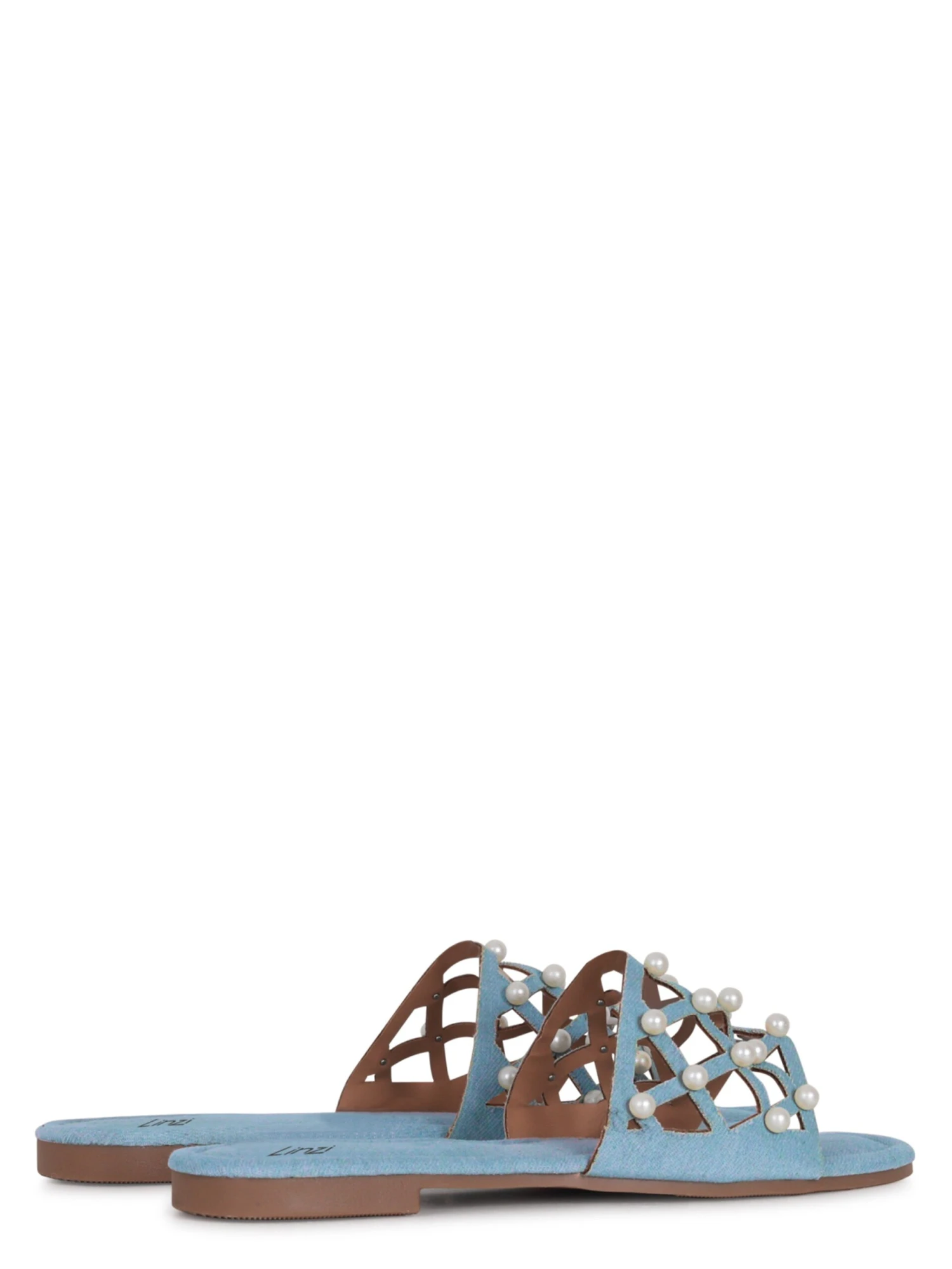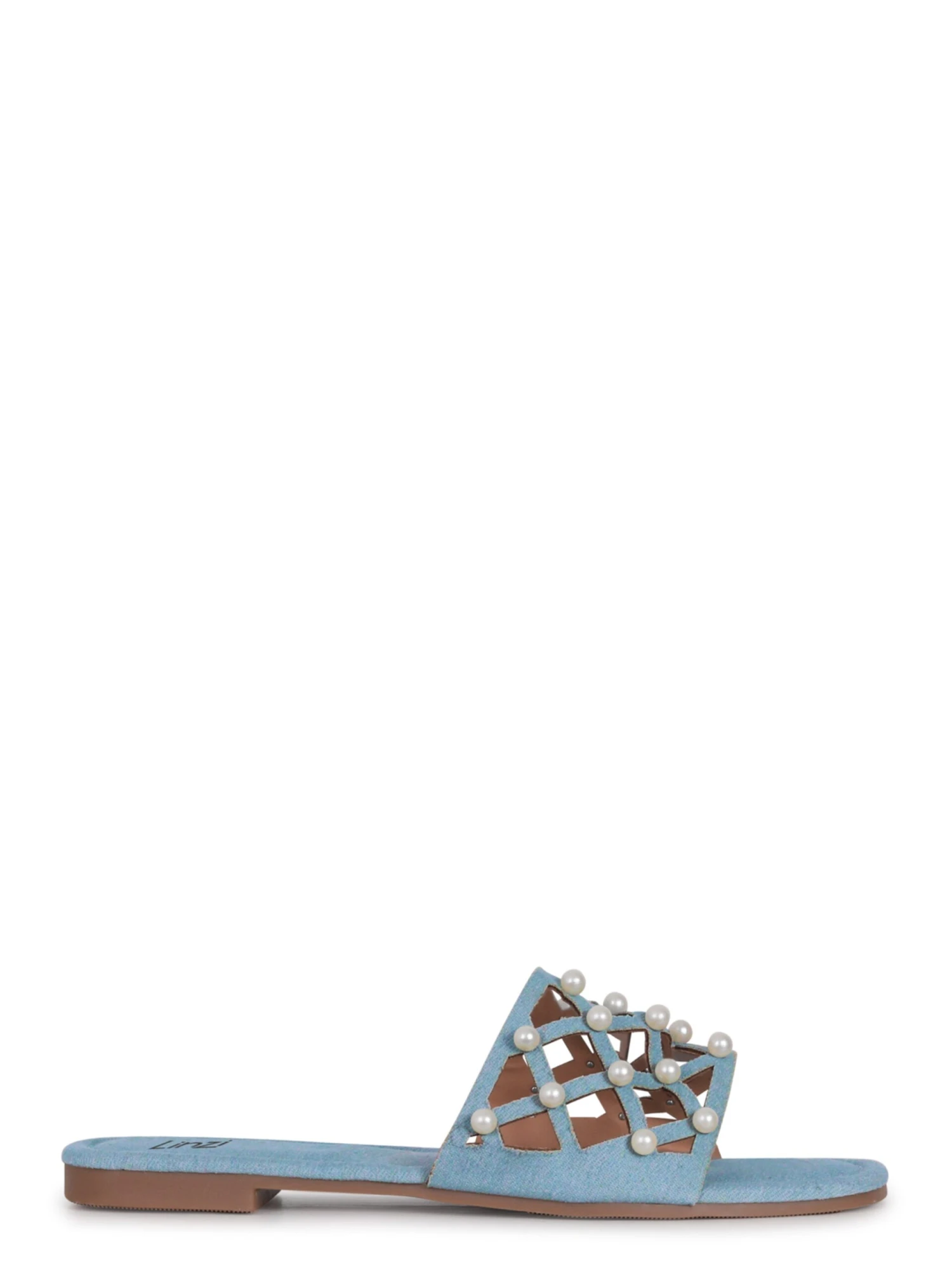 Stay on-trend with our denim Reyna sliders. Detailed with pearls, these chic summer slides offer added comfort with their padded insole. Elevate your warm-weather wardrobe with your new go to sandals Reyna.