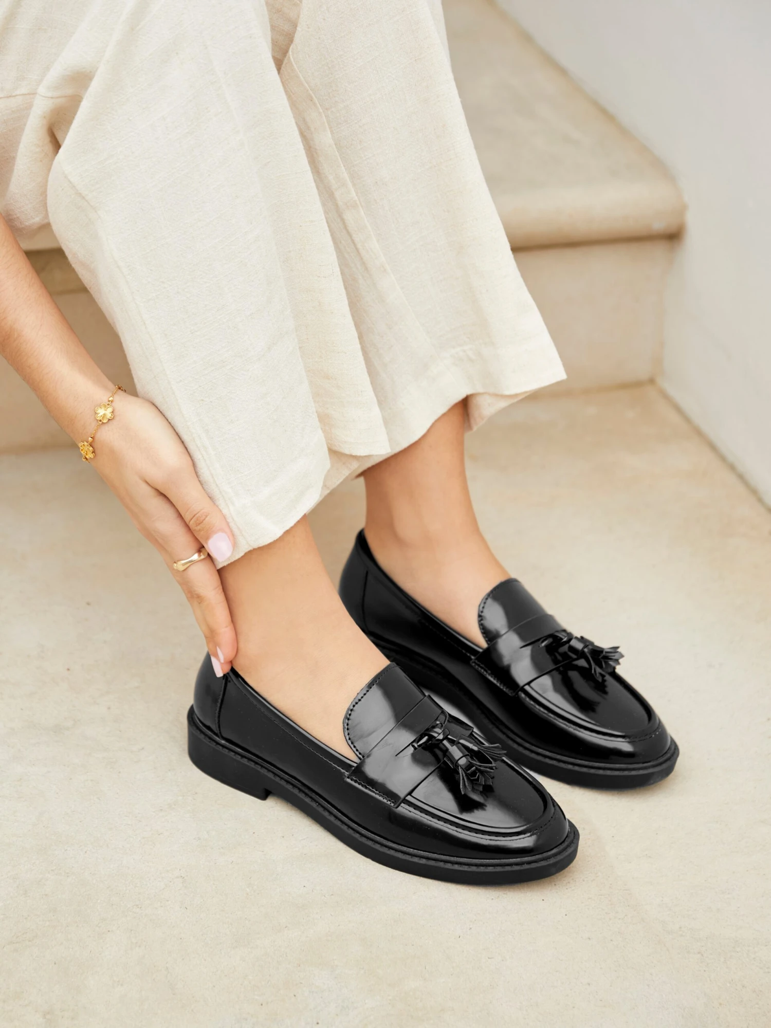 Fashionable and graceful, these Rosalie high-shine loafers give your ensemble a stylish boost, with front tassel accents to complete the look.