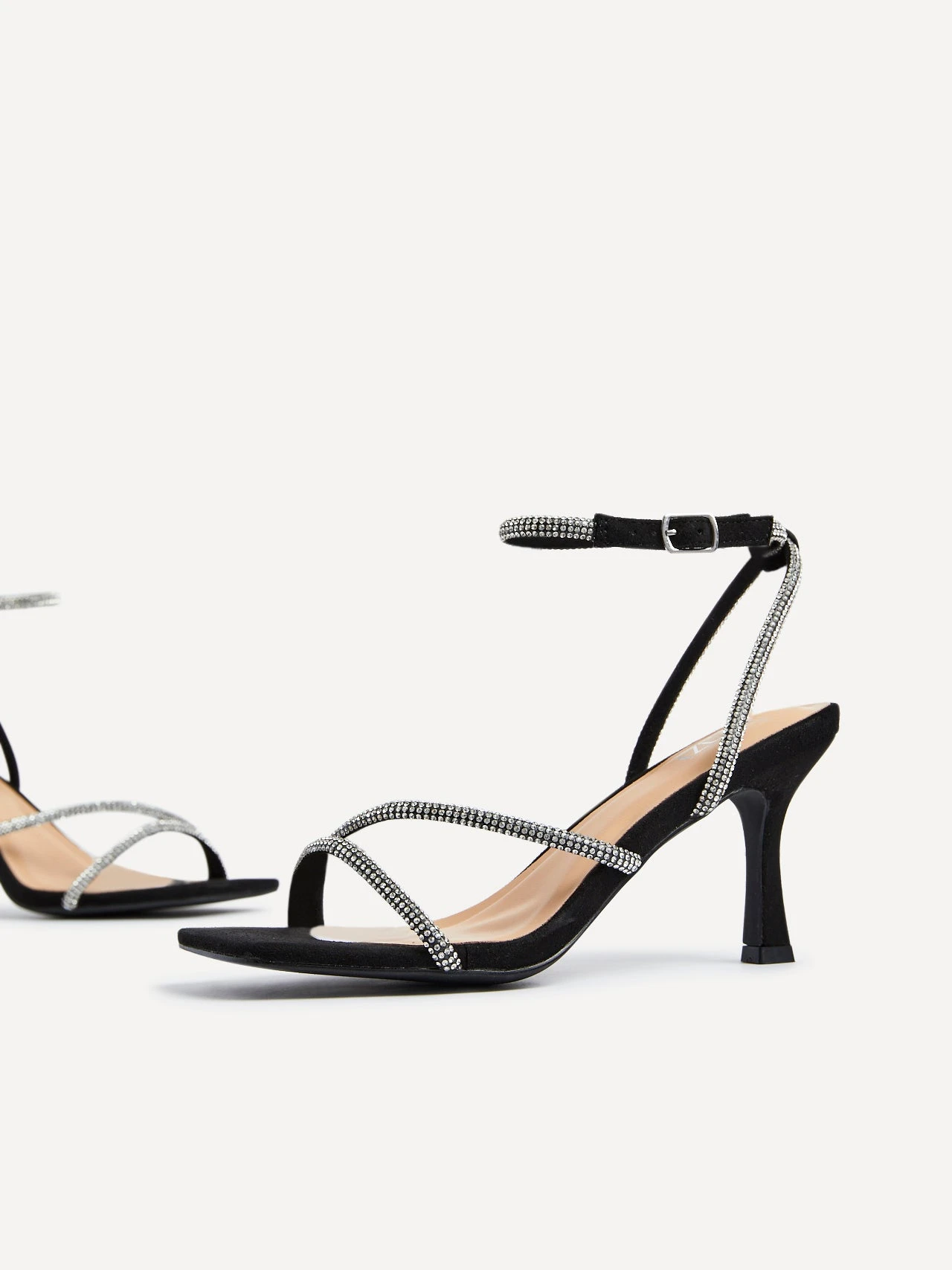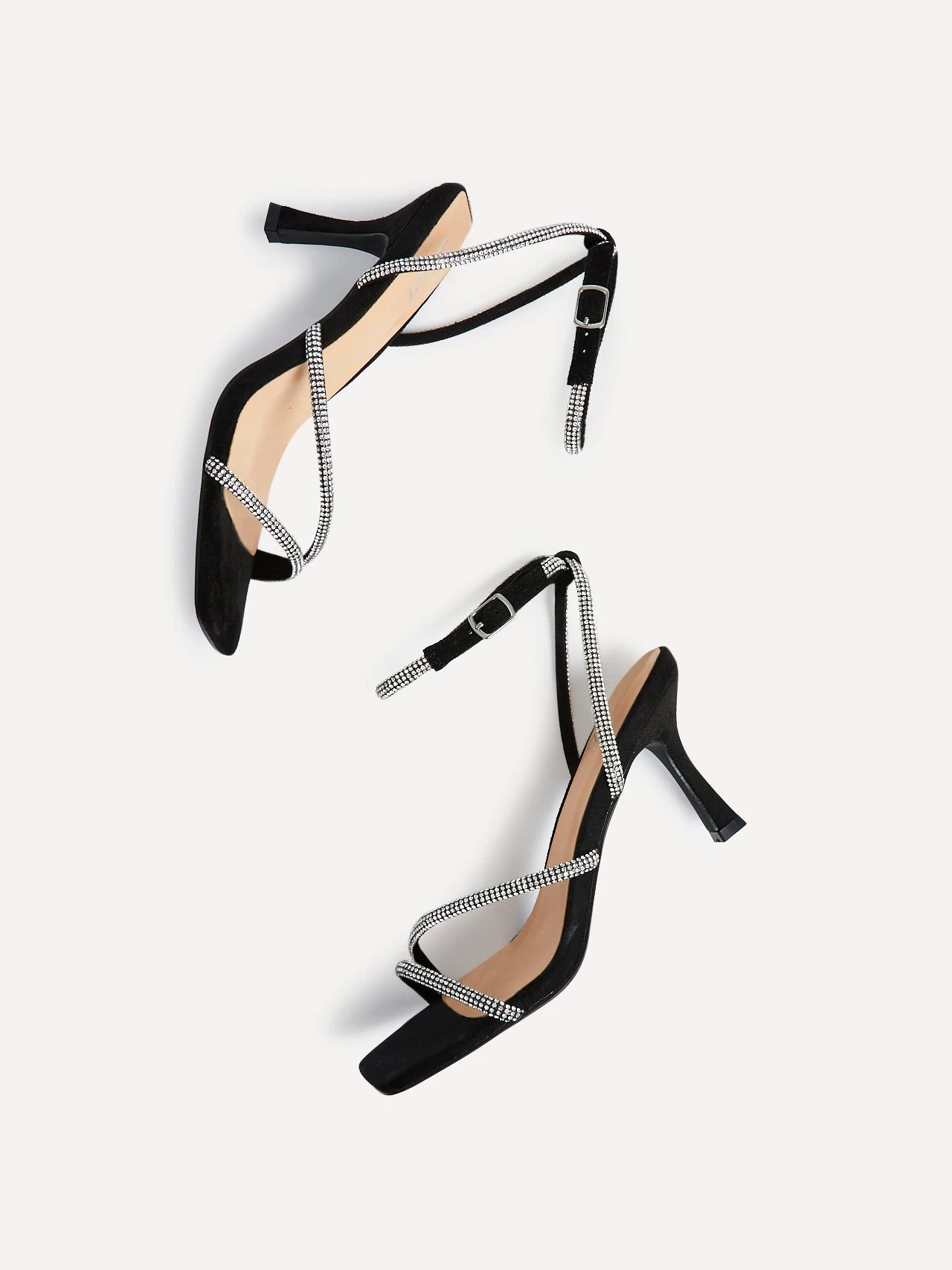 Our Linzi wide fit range is designed to let you show off your style in supreme comfort. Crafted from a soft faux suede, these elegant heeled sandals feature a wrap-around diamante ankle strap and an 8 cm heel.