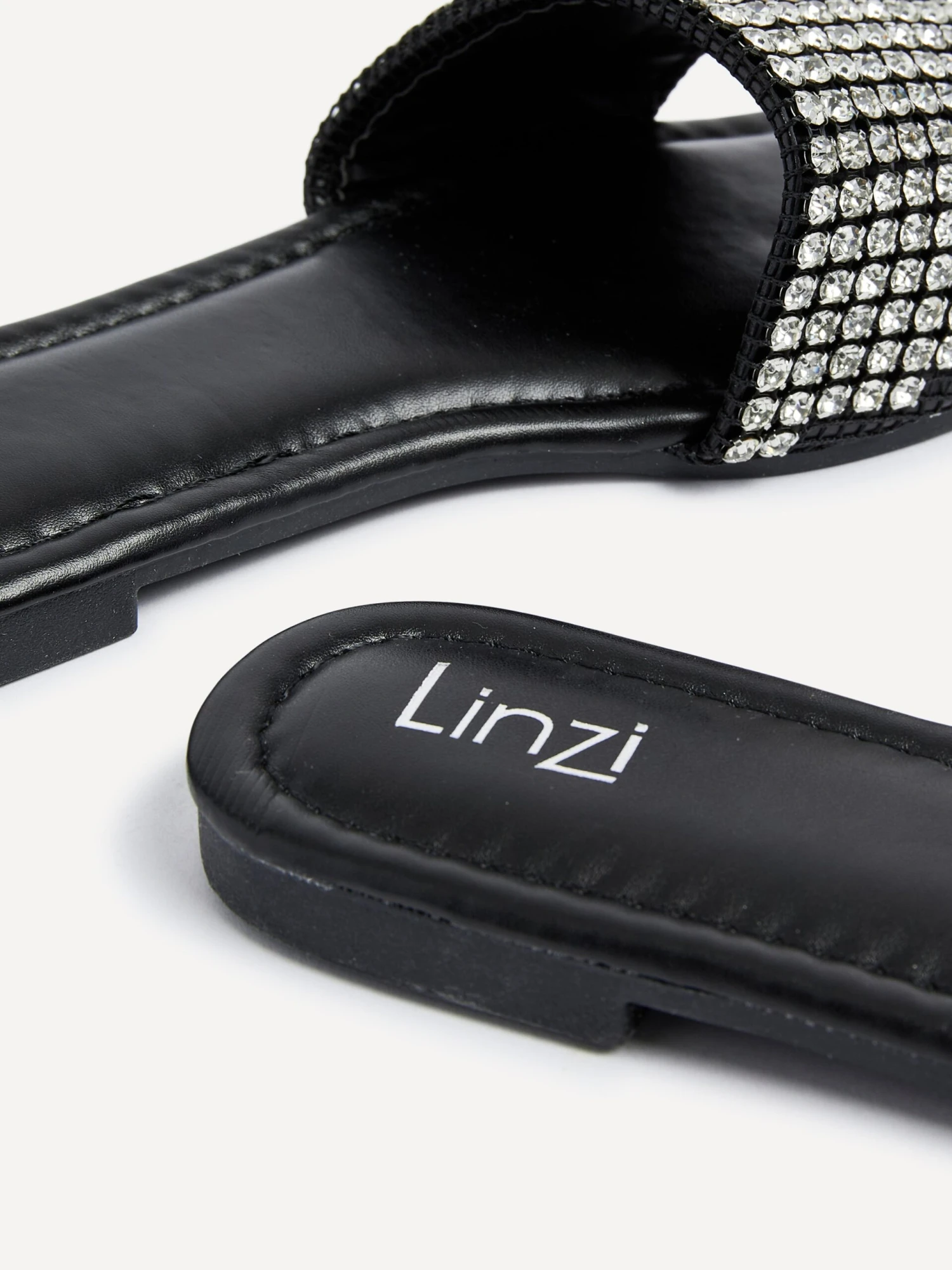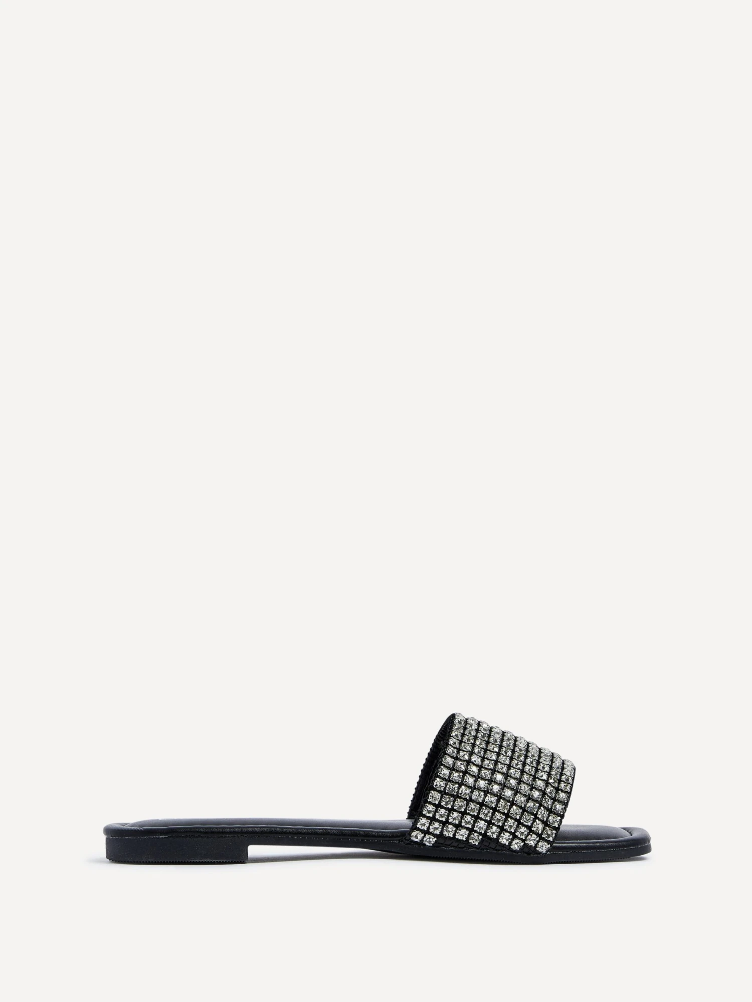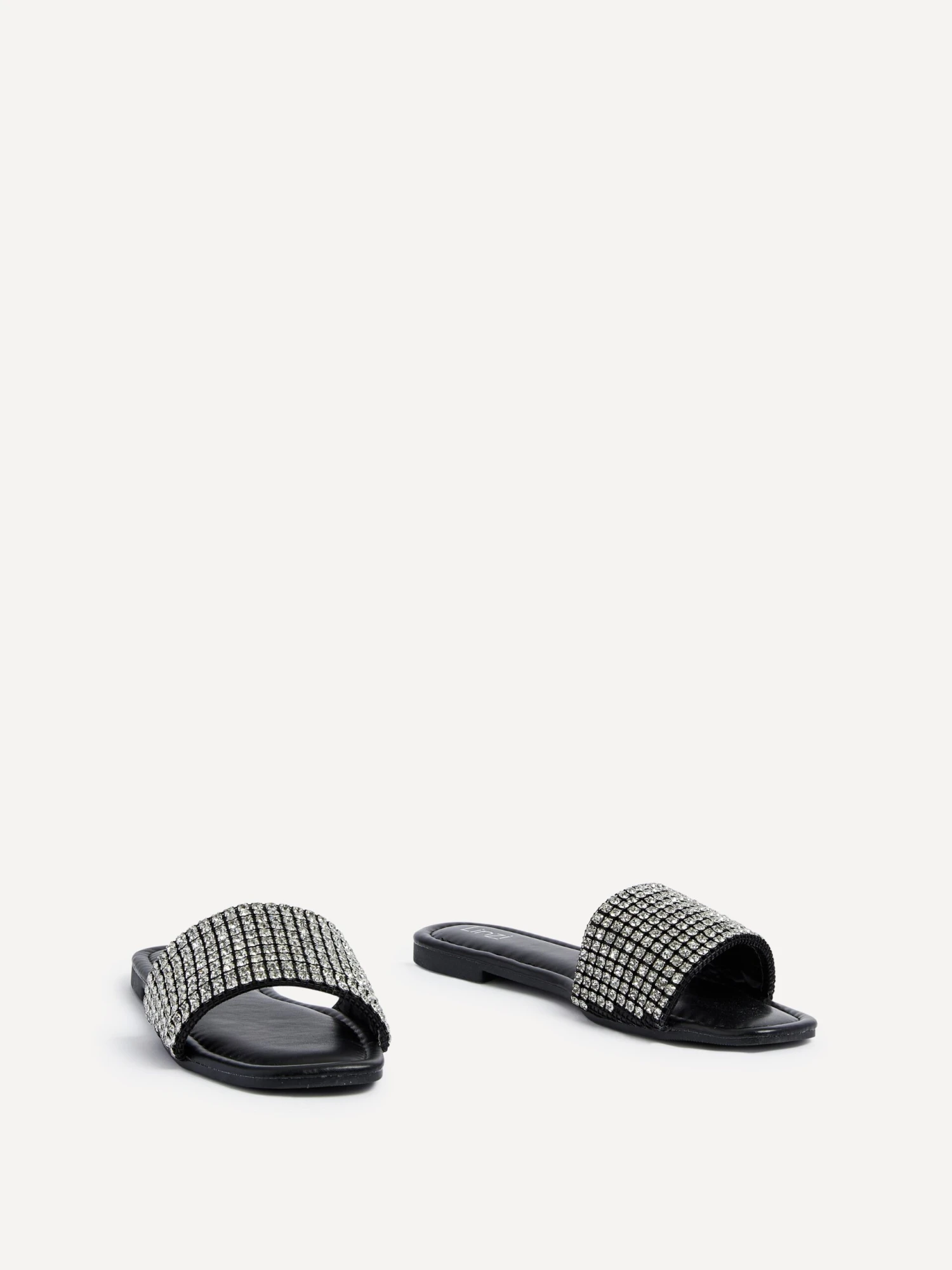 Indulge in luxury with these effortlessly chic faux leather sliders. Featuring a stunning diamante front strap and a padded insock for unparalleled comfort, these shoes make a statement with every step. Slip them on and elevate your style to the realm of exclusivity.