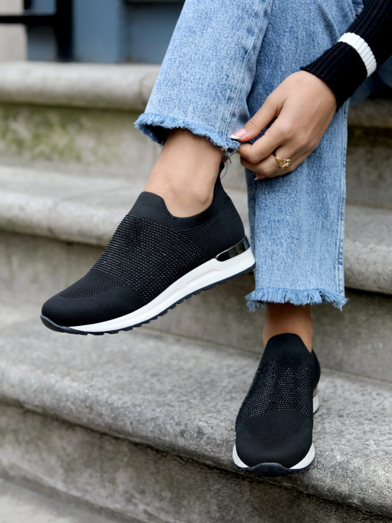 A timeless sneaker exemplified with beautiful diamante adornment. Easy to coordinate and adaptable, our Storme Flyknit trainer showcases a pull-on loop and a rear metallic accent.