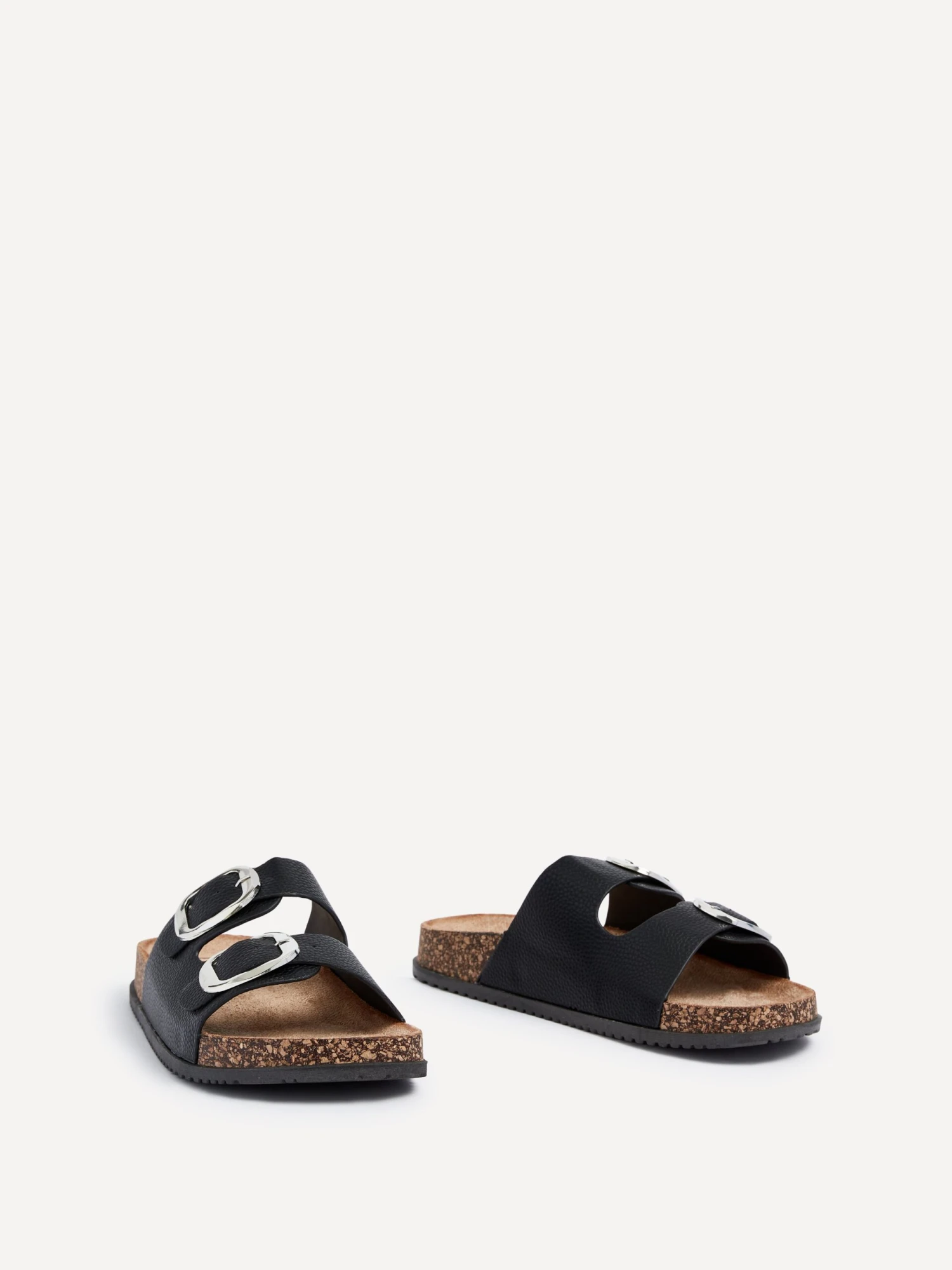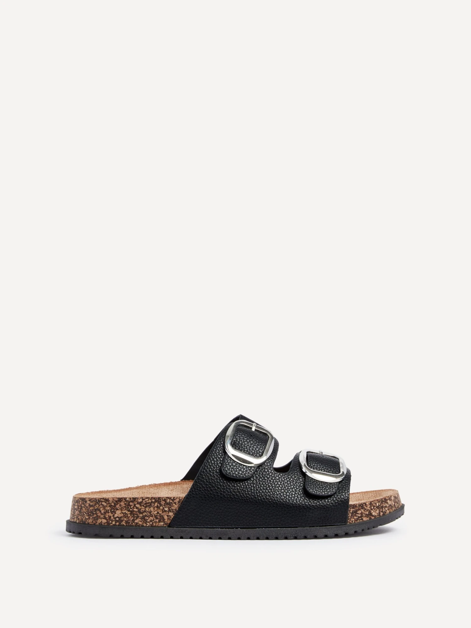 Experience the perfect Summer wardrobe essential with our Tatum slider sandals made from premium faux grain leather. These sandals feature a soft faux suede insock and a double front strap with a luxury double buckle detailing, making them the ideal easy-to-wear footwear option.
